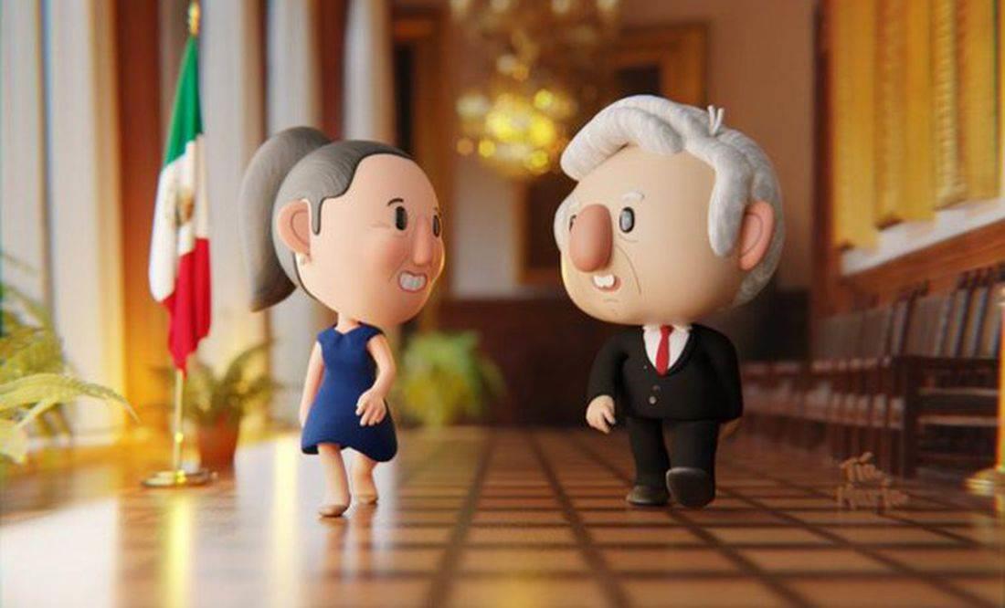 Vestida de azul rey con su icónica coleta, esta animación presenta las características principales de la imagen de Sheinbaum; por otro lado, se muestra al presidente de traje con corbata roja y pelo blanco, justo como se ha caricaturizado su imagen entre sus admiradores, desde que se hizo cargo del mandato del país en el 2018.