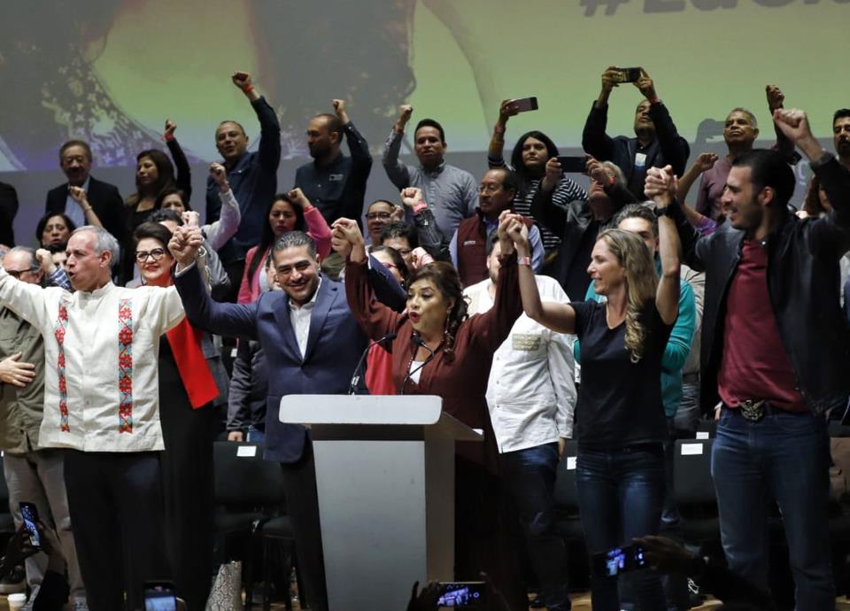 , PT y PVEM a la Jefatura de Gobierno, y presumió unidad en el movimiento, pues la acompañaron y arroparon los cuatro aspirantes que participaron en el proceso interno para definir a su coordinador estatal.