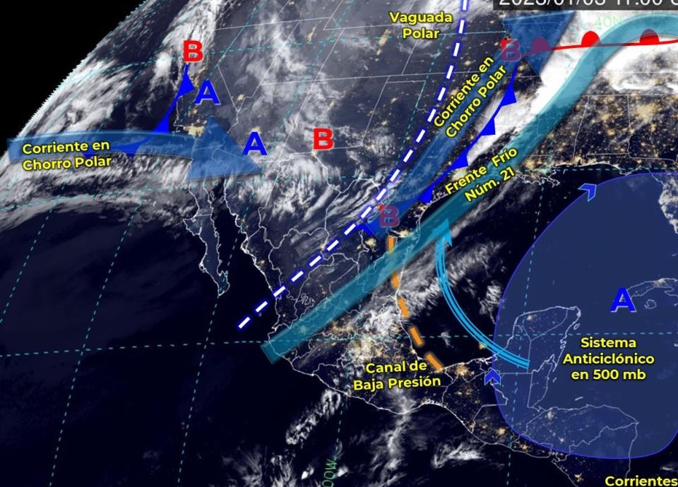 La vaguada polar asociada al frente frío 21, se desplazará al sur de Estados Unidos y dejará de afectar al país al final del día.