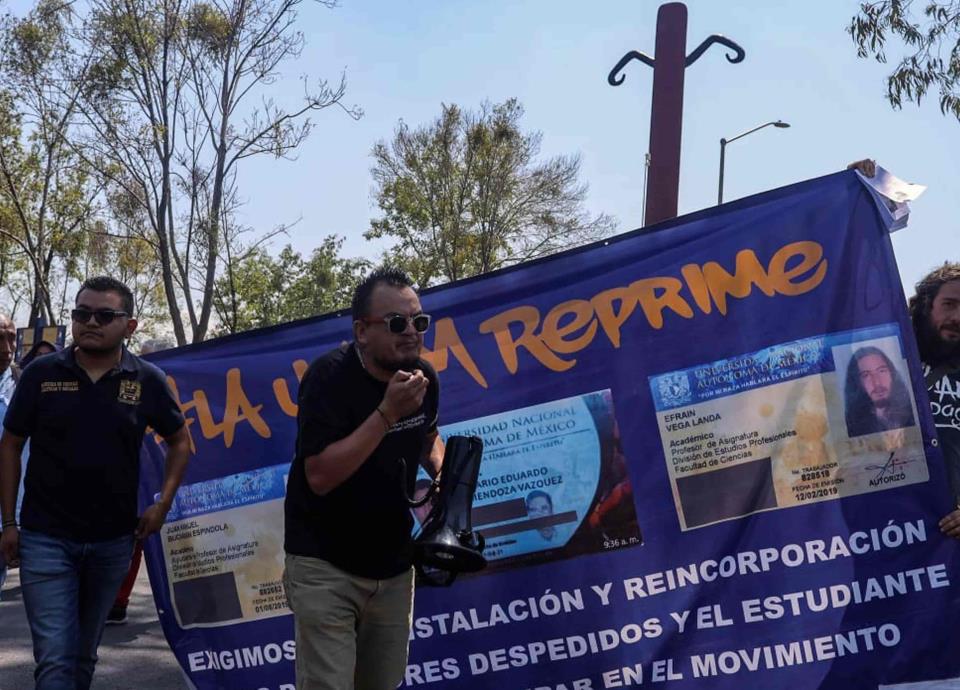 Los manifestantes acusaron que el exconsejero busca competir por la Rectoría de la UNAM. Además, señalaron que es ilegal que le hayan guardado su plaza durante más de una década.