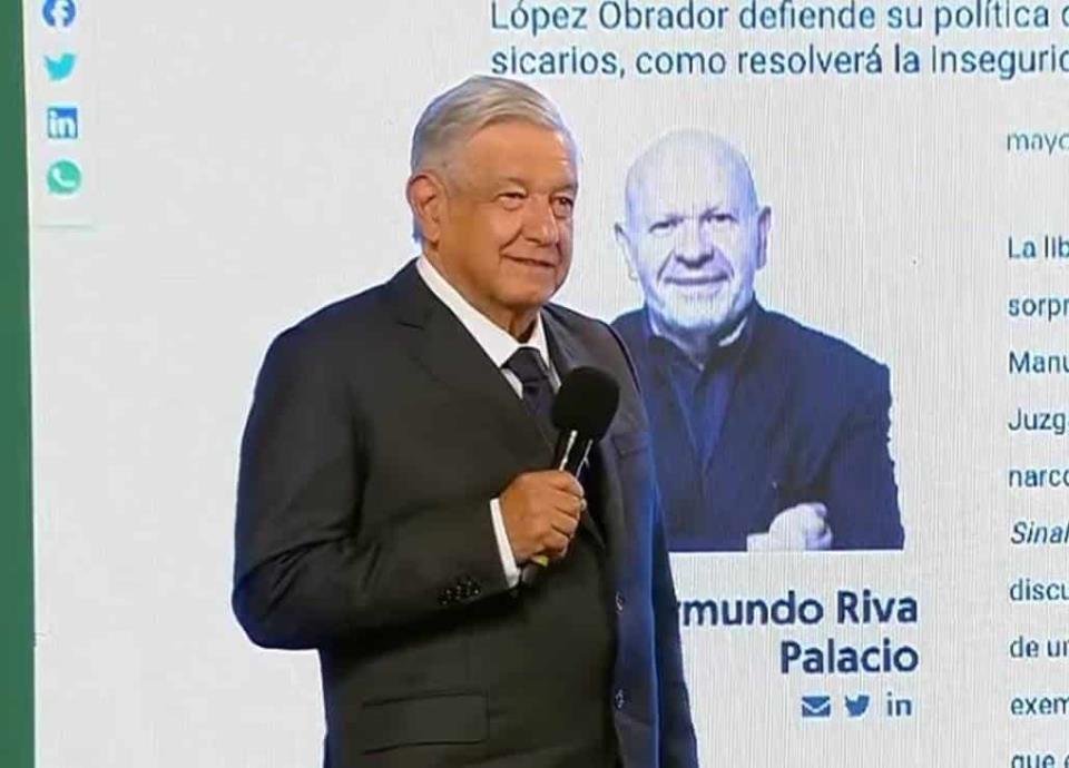 En su conferencia mañanera de este viernes en Palacio Nacional, López Obrador mostró una columna de Riva Palacio, que hablaba sobre el narcotraficante Héctor "El Güero Palma".