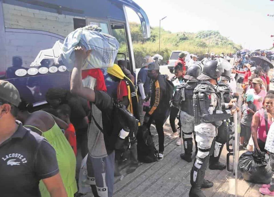 TAPACHULA, Chis. /EL UNIVERSAL.- En un punto de atención distinto al oficial, personal del Instituto Nacional de Migración (INM) reanudó los traslados de haitianos hacia estados del centro del país, con el fin de regularizar su situación migratoria; mientras, unos 5 mil caribeños continúan en una espera de al menos cuatro días en el Estadio Olímpico, lugar designado por esa institución. Desde hace dos días, el INM reanudó los traslados de migrantes en otro punto de la ciudad, sin previo aviso. El personal de Administración y Logística del instituto se trasladó a las instalaciones del Centro de Orientación y Apoyo a Migrantes Una Luz en el Camino Sin Fronteras, ubicado a un costado de la carretera del Libramiento Sur, que comunica con la frontera con Guatemala. En este sitio, por donde transitan diariamente cientos de tráileres, es posible observar una fila de más de un kilómetro, integrada por hombres, mujeres y niños procedentes de Haití. Bajo los fuertes rayos del sol, los migrantes esperan formados a que les llegue su turno para abordar un camión que los traslade a uno de los 10 estados del país que el INM estableció para otorgar visas humanitarias y, así, puedan permanecer por un año de forma regular en el país. Este miércoles, sin protocolos de salud por el Covid-19 y desde las 11:00 de la mañana, migrantes haitianos, algunos de ellos sin cubrebocas, abordaron autobuses con destino a Michoacán, Durango, Zacatecas, Colima, León y San Miguel de Allende, Guanajuato. Consultado al respecto, el Instituto Nacional de Migración informó a EL UNIVERSAL que se han abierto otros puntos de traslado de migrantes para evitar desorden y despresurizar la situación que se vive en el Estadio Olímpico de Tapachula.