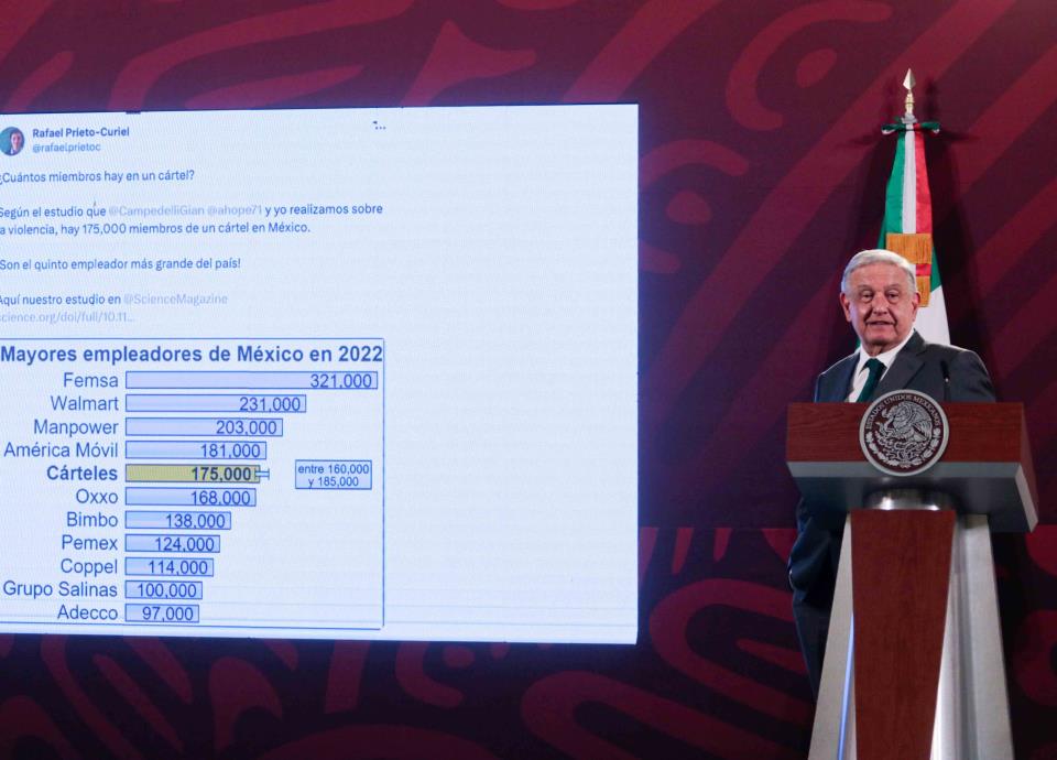 CIUDAD DE MÉXICO.- El presidente Andrés Manuel López Obrador rechazó que el narcotráfico sea el "quinto empleador" más grande en México, como lo dio a conocer un estudio publicado en la revista "Science".