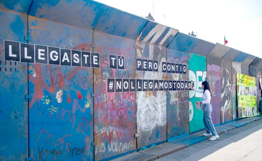 Además, en el cruce de la calle peatonal de Madero y Eje Central, en el Centro, trabajadores de obras de la Ciudad de México instalaron más vallas de dos metros de altura para contener a colectivas en la marcha.