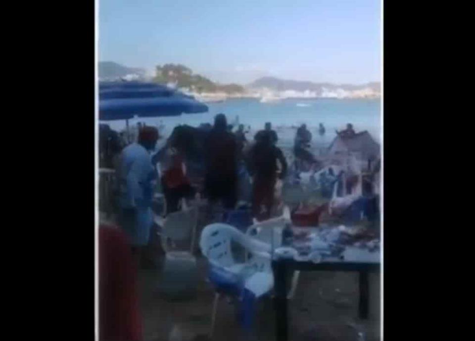 Según testigos que grabaron en video la riña, los turistas pretendían irse de un local de comida en la playa de Caleta, pues el total de la cuenta se les hizo elevado.