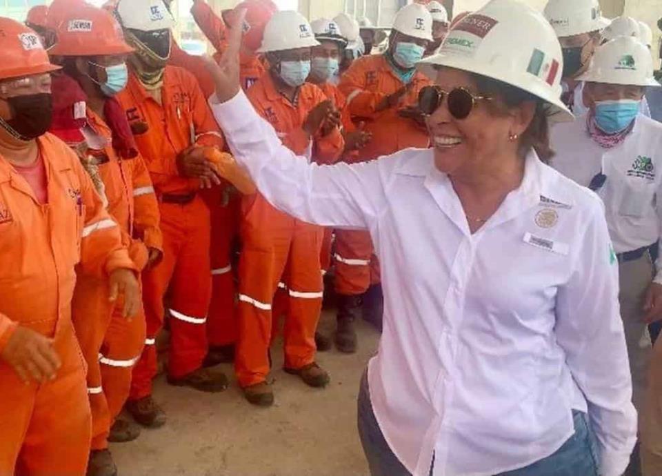 , la cual lidera los trabajos de construcción en la refinería de Dos Bocas, se manifestaran para demandar mejores prestaciones laborales, la secretaria de Energía, Rocío Nahle, se reunió con ellos en Tabasco.