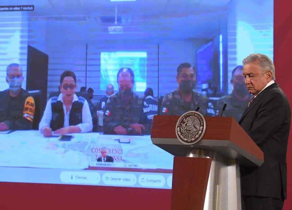 Durante la conferencia de prensa del presidente Andrés Manuel López Obrador, ambos funcionarios sostuvieron una videoconferencia desde Cancún, Quintana Roo, para informar las acciones de apoyo a la población en esos estados.