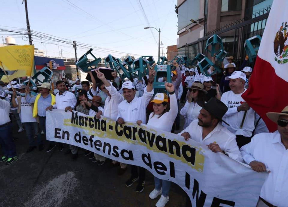 "Al grado de que el domingo ahí están agarrados de las manos Fox con ¿cómo se llama el del PRI? Alejandro Moreno,(Miguel Ángel Osorio) Chong, Claudia Ruiz Massieu, José Wolderbeng, Aguilar Camón, (Enrique) Krauze, Marko Cortés; (Carlos) Loret de Mola, etcétera, ahí todos, agárraditos de la mano.. 'agárrense de las manos'", cantó.