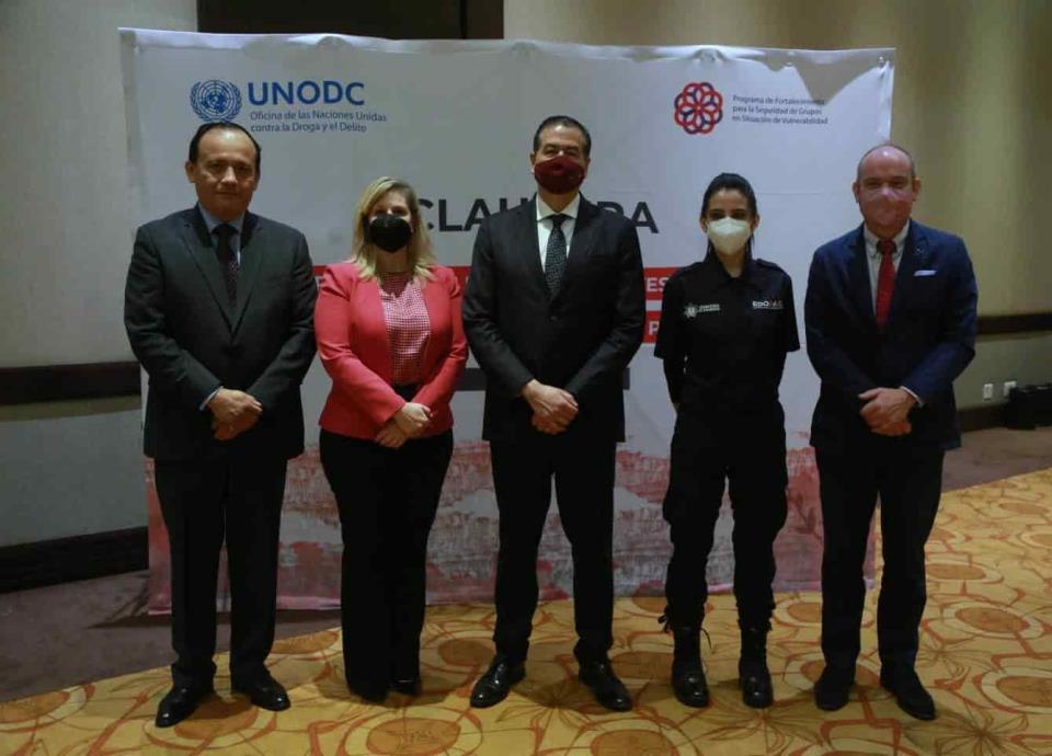 "Los tenemos que enfrentar porque somos parte de una misma región, compartimos frontera, compartimos familia, compartimos valores, y tenemos que atender la inseguridad", expresó ante el representante de la Oficina de Naciones Unidas contra la Droga y el Delito (UNODC), Kristian Hölge; el director general de Política y Desarrollo Policial de la SSPC, Víctor Severo Ortiz, y la directora adjunta de Gestión y Ejecución de Programas de la Oficina de Asuntos Antinarcóticos y Aplicación de la Ley (INL), de la embajada de Estados Unidos en México, Lori J. Antolinez.