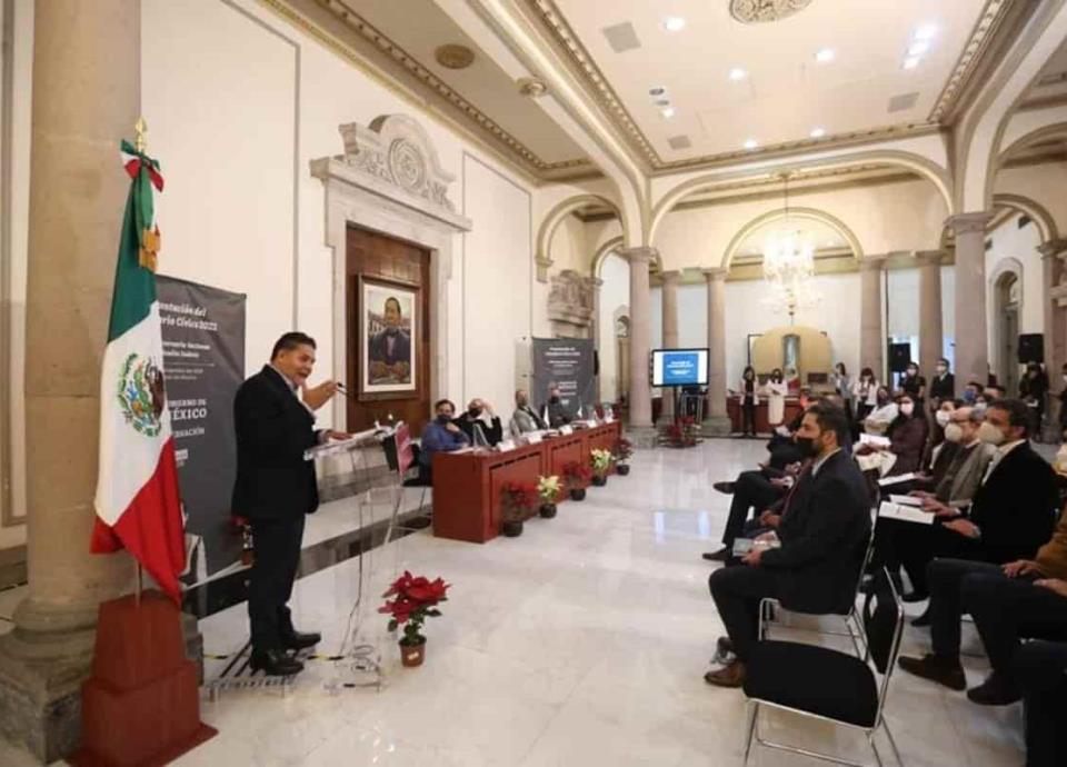 Solorio, presentó de manera oficial el Calendario Cívico 2022, edición que está dedicada al expresidente Benito Juárez García, en el marco de su 150 aniversario luctuoso.
