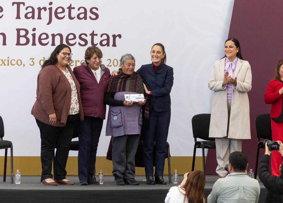 CIUDAD DE MÉXICO, enero 3 (EL UNIVERSAL).- Durante la entrega de las primeras tarjetas Pensión Mujeres Bienestar, la gobernadora Delfina Gómez Álvarez refrendó su coordinación con la presidenta Claudia Sheinbaum y aseguró que con la entrega de las primeras tarjetas Pensión Mujeres Bienestar, - las que recibirán bimestralmente 3 mil pesos- representa la lucha que hacen día a día.