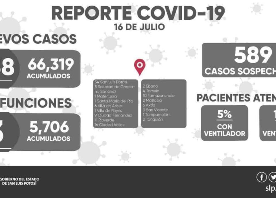 Los decesos subieron a 5 mil 706, con un índice de letalidad que bajó a 8.60% decesos por cada 100 casos. Las tres defunciones de ayer viernes son de hombres, dos con residencia en la capital del estado y uno de Ciudad Fernández, que presentaban comorbilidades como obesidad, diabetes e hipertensión.