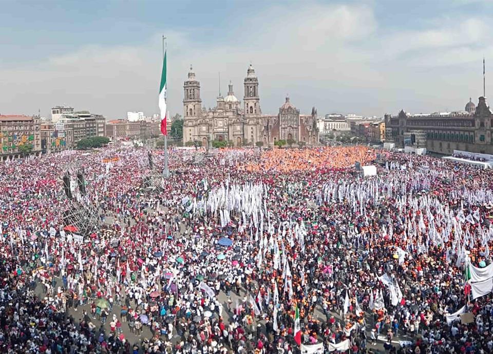 —"No, es libre. No se obliga a nadie. Sí, claro (se les puso transporte). Tenemos que corresponderle al gobierno de la 4T, lo bien que nos ha tratado.