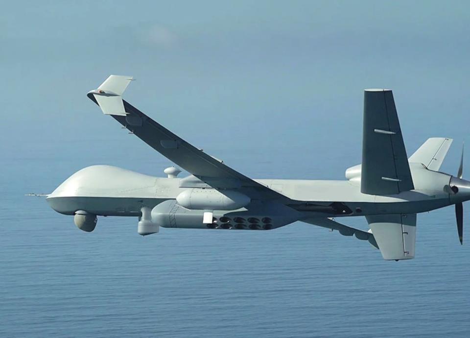 El dron, fabricado por General Atomics, es de vigilancia de alta autonomía, equipado con sensores avanzados y cámaras de alta resolución que permiten monitoreo en tiempo real.