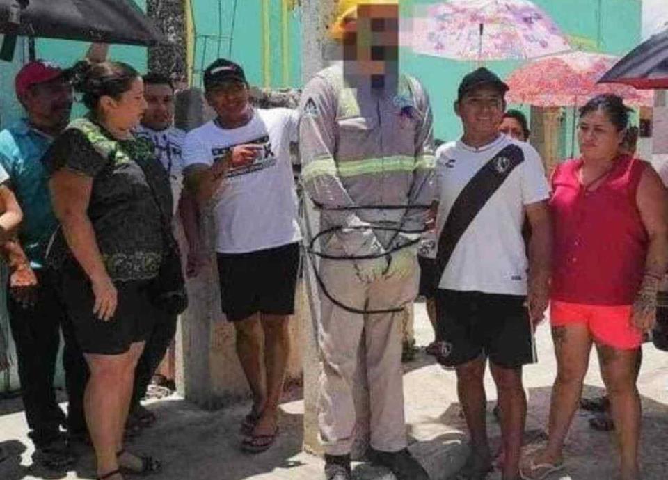 El empleado de la CFE aceptó simular que lo habían amarrado a un poste de luz contra su voluntad para que se tomaran medidas para que la energía eléctrica regresara lo antes posible.