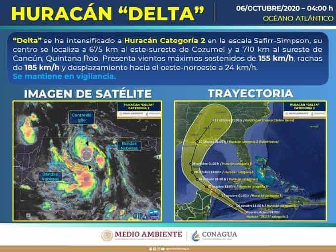 De acuerdo con el reporte del organismo mexicano, dado a conocer a través de una videoconferencia, la escalada de "Delta", que pasó de tormenta tropical a huracán categoría 1 en la escala Saffir-Simpson.