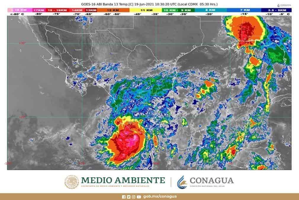 Según el pronóstico, el sábado la tormenta tropical no ganará fuerza y se mantendrá con ese estatus, y el domingo se debilitará a a baja presión remanente, aunque la trayectoria indica que avanzará paulatinamente hacia el norte y tocará tierra la tarde del sábado por el estado de Jalisco.