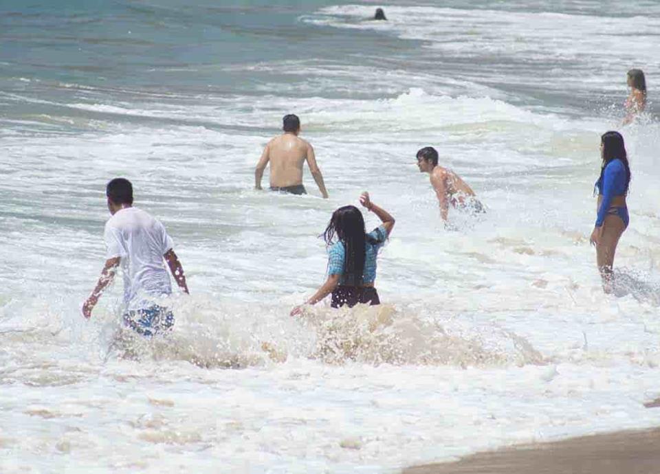 Pero ni las restricciones ni la bandera roja debido al mal tiempo impidió que los visitantes insistieran en bañarse en el mar altamente embravecido, pese a que tan sólo hace dos días un turista estadounidense fue golpeado por una ola, muriendo al instante.
