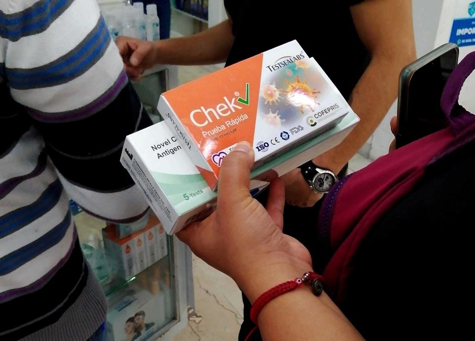 CIUDAD DE MÉXICO.- "Tenemos aquí la prueba Covid, con el mejor precio del mercado. Pruebas Covid, chécate el precio, resultados efectivos", se escucha en una bocina colocada afuera de un local ubicado en la calle 5 de Febrero, en el Centro Histórico de la Ciudad de México. En un recorrido, se constató que en decenas de locales se venden supuestas pruebas de antígeno para diagnosticar coronavirus, con precios que van desde los 130 pesos hasta los 250, la más cara. Los comerciantes ofrecen pruebas rápidas