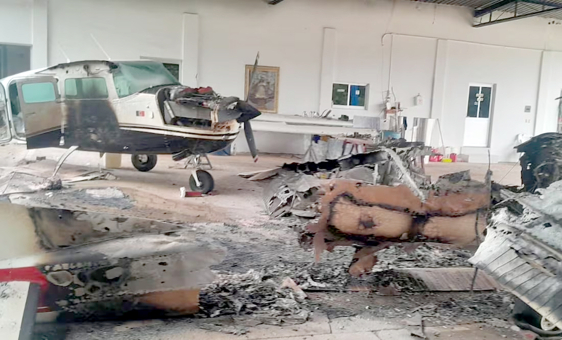 Por la madrugada y casi de manera simultánea, otro grupo fuertemente armado, abrió fuego y lanzó drones cargados con explosivos en una pista de aterrizaje del municipio de Tepalcatepec.