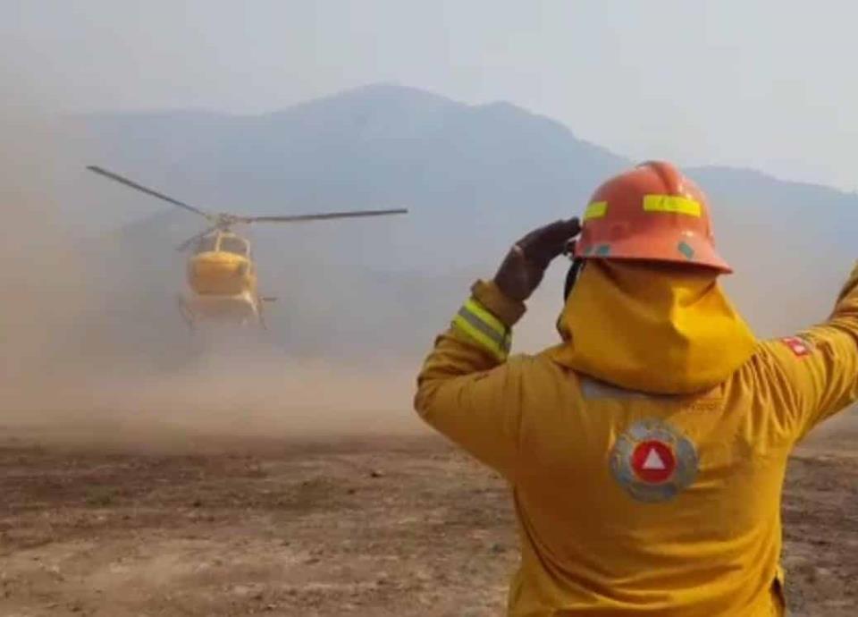 Apoyan siete helicópteros combate a incendio en Santiago