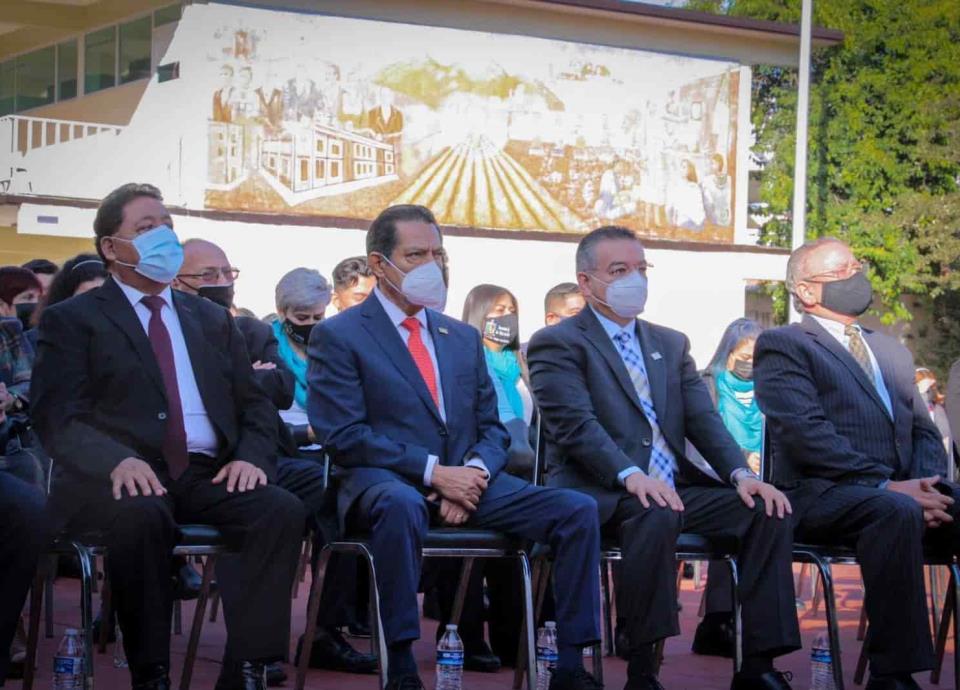 El representante del Comité Ejecutivo Nacional en la Sección 50, Aquiles Cortés López fue quien acompañó al Secretario General de la Sección 21, José Francisco Martínez Calderón, en el emotivo evento por el 151 aniversario de la “Centenaria y Benemérita” Escuela Normal, como fue nombrada oficialmente por el Congreso del Estado en 1970.