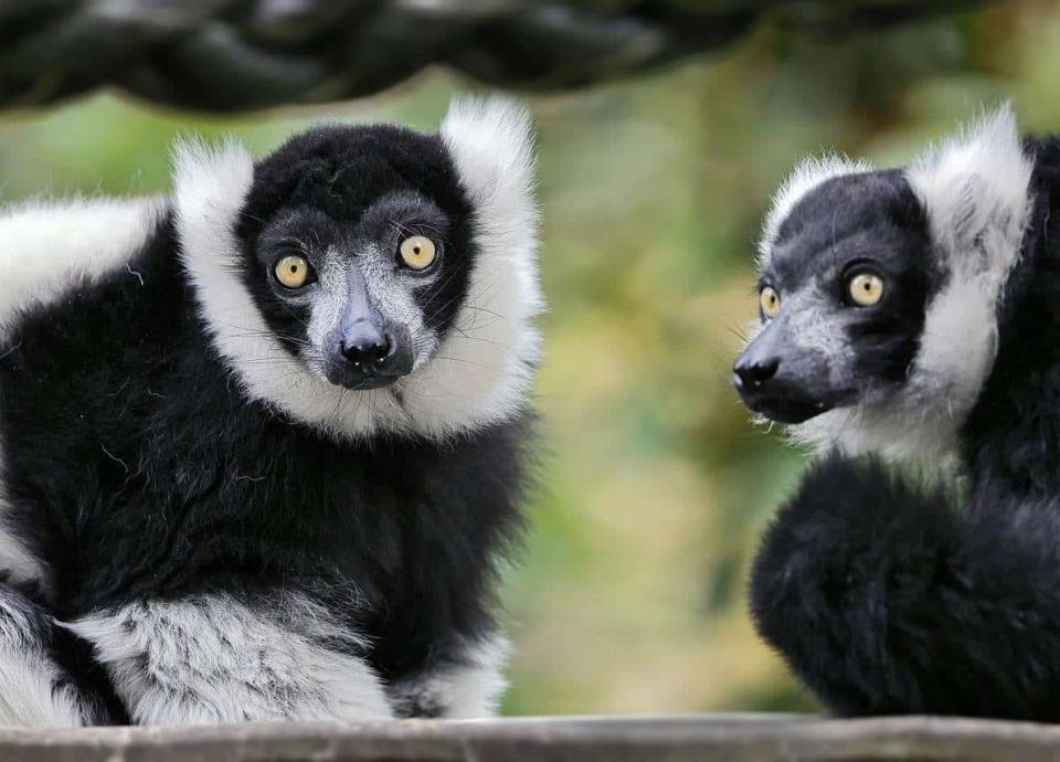 * Indri (Indri indri). El indri, el lémur más grande de Madagascar, tiene una masa de 7 kg y un pelaje denso de colores variados. La destrucción de su hábitat por tala y quema, junto con la caza directa, lo han colocado en peligro crítico de extinción.