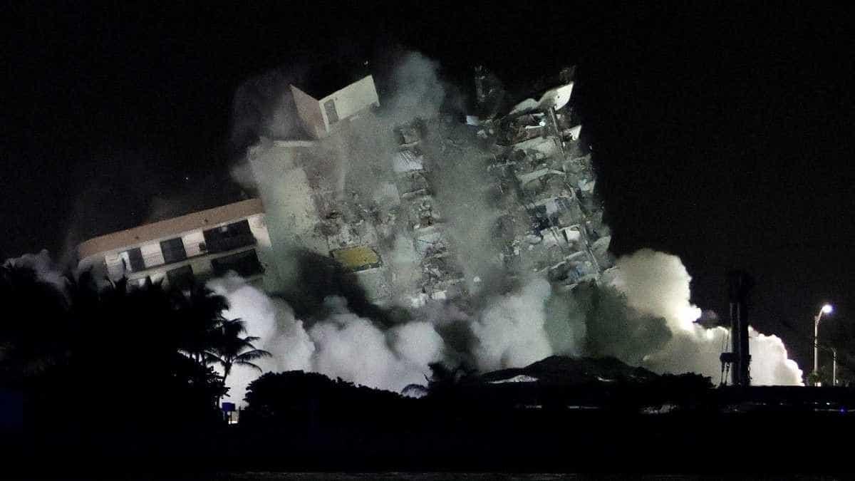 Miami.- Diez días después del colapso de la mayor parte de su estructura, el resto de un edificio de 12 pisos de Surfside, cerca de Miami, fue demolido con una explosión controlada, antes de la llegada de la tormenta tropical Elsa.