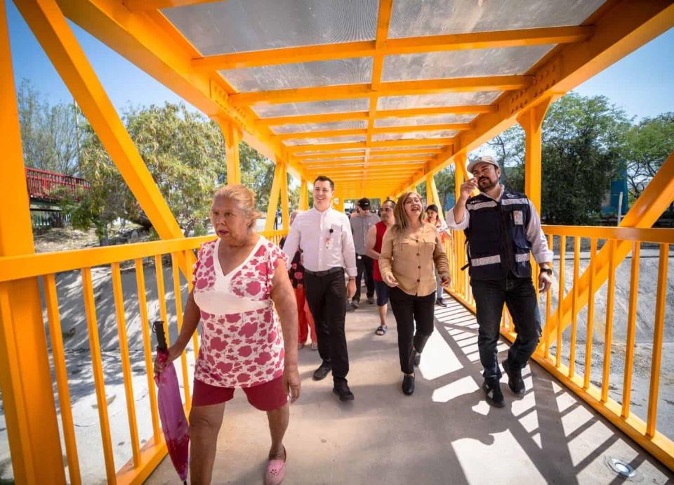 El Presidente Municipal de Monterrey, Luis Donaldo Colosio Riojas, acompañado por vecinos de esta colonia, realizó el corte de listón inaugural, para posteriormente recorrer el nuevo puente, de accesibilidad universal, al contar con rampas.