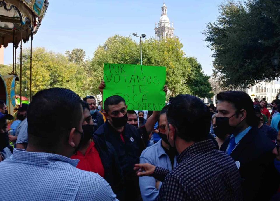 Más de una veintena de empleados y dueños de antros, cantinas y bares de Monterrey, se congregaron a las afueras del Palacio Municipal