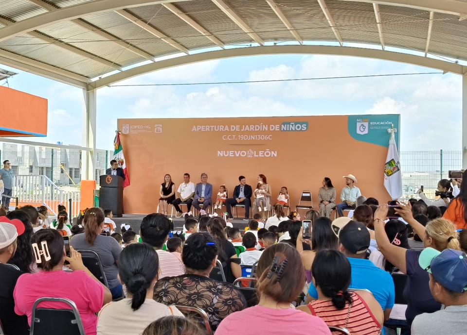 El Gobernador Samuel García Sepúlveda inauguró ayer el Jardín de Niños Villas de Palmanova, en Juárez.
