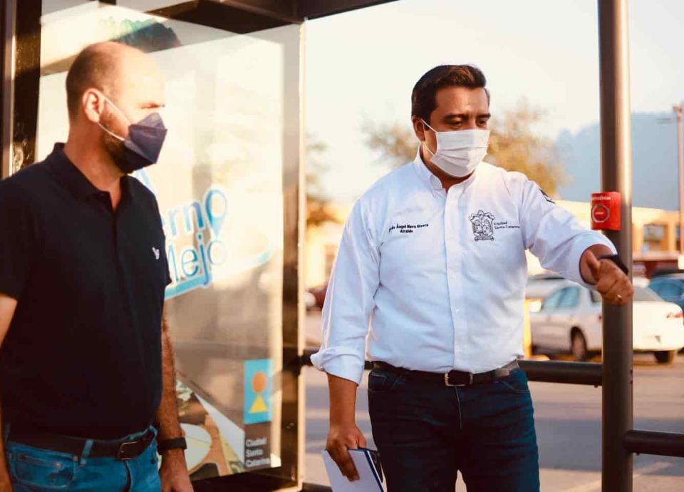 Ante el anuncio de más unidades urbanas y de la línea cuatro del metro a Santa Catarina, el gobierno municipal proyecta la instalación de 70 paradas de transporte público con botones de pánico, así lo anunció Jesús Nava Rivera.