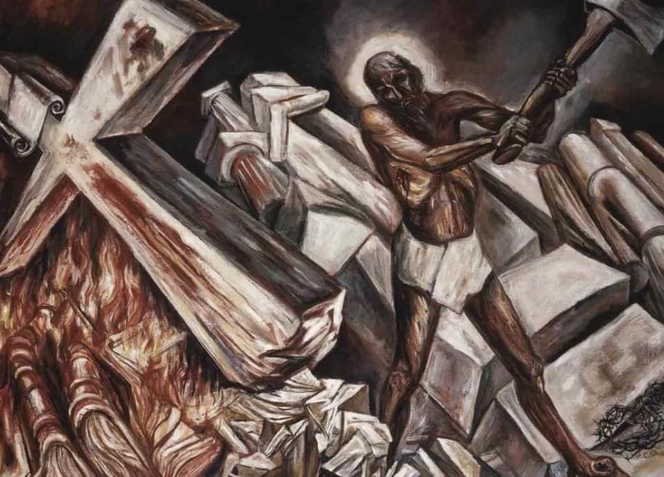 El Presidente acompañó su mensaje con la pintura Cristo destruye su cruz, de José Clemente Orozco (Ciudad Guzmán, 23 de noviembre de 1883 — Ciudad de México, 7 de septiembre de 1949).
