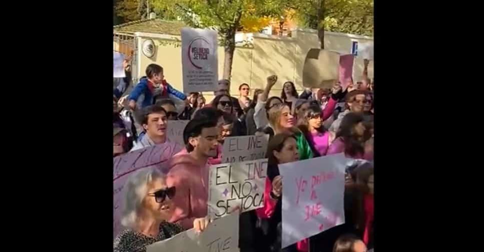 En video, mexicanos en Madrid, mostraron carteles en favor del Instituto Nacional Electoral (INE), tachando además, con cánticos al presidente López Obrador de "traidor".