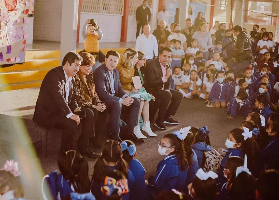 Donde el Alcalde acompañado del Gobernador Samuel García Sepúlveda como de su esposa Mariana Rodríguez, de AMAR a Nuevo León; de las Secretarias de Igualdad e Inclusión, Martha Herrera y de Educación, Sofialeticia Morales; se dio el arranque de este programa en la Primaria Mártires de Cananea en Santa Catarina. (AME)
