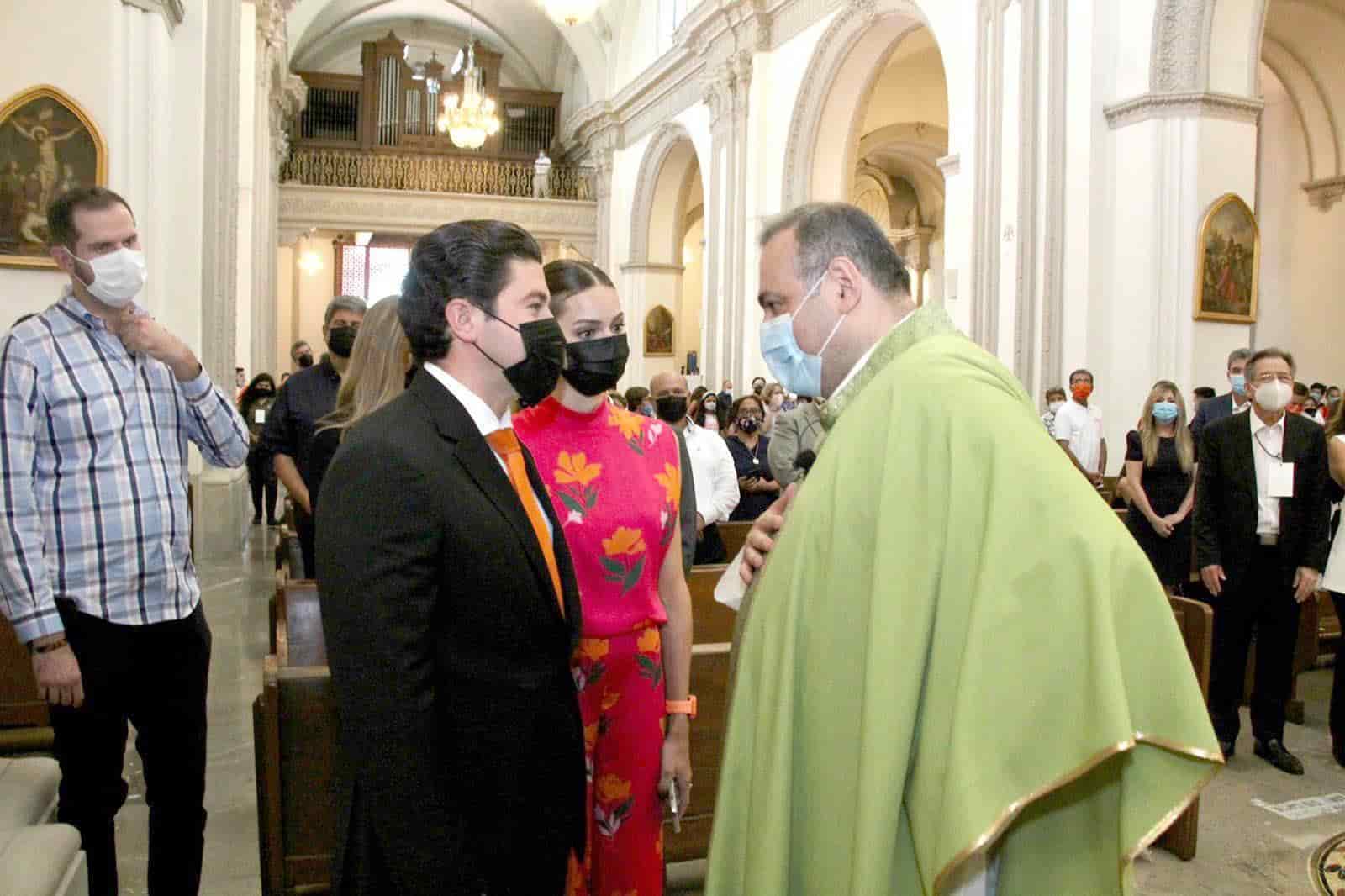 Tras concluir la entrega de su constancia, el ahora gobernador electo acudió a la Catedral de Monterrey para ser partícipe de la homilía.