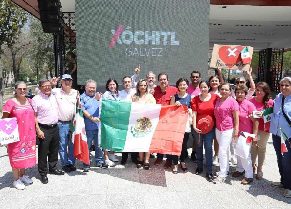 Integrantes de estos partidos acudieron este domingo a la Plaza Zaragoza para celebrar la candidatura de Xóchitl Gálvez en el Frente Amplio por México.