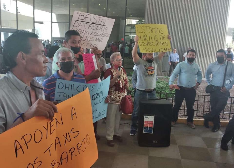 Cerca de 200 taxistas arribaron a la explanada para hacerle saber su inconformidad a los diputados, previo a la reunión que se llevara a cabo esta tarde por parte de la Comisión de Tarifas del Instituto de Movilidad y Accesibilidad (IMA),