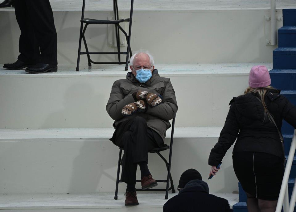 Los guantes de Sanders los tejió una maestra de escuela primaria de Vermont que tiene un negocio paralelo en el que elabora guantes con lana reciclada. Su famoso look, incluida la chaqueta de invierno marca Burton Snowboards, desató innumerables memes: el excandidato presidencial fue puesto sentado en el metro, la Luna y el sofá con el elenco de “Friends”, entre otras ideas creativas.