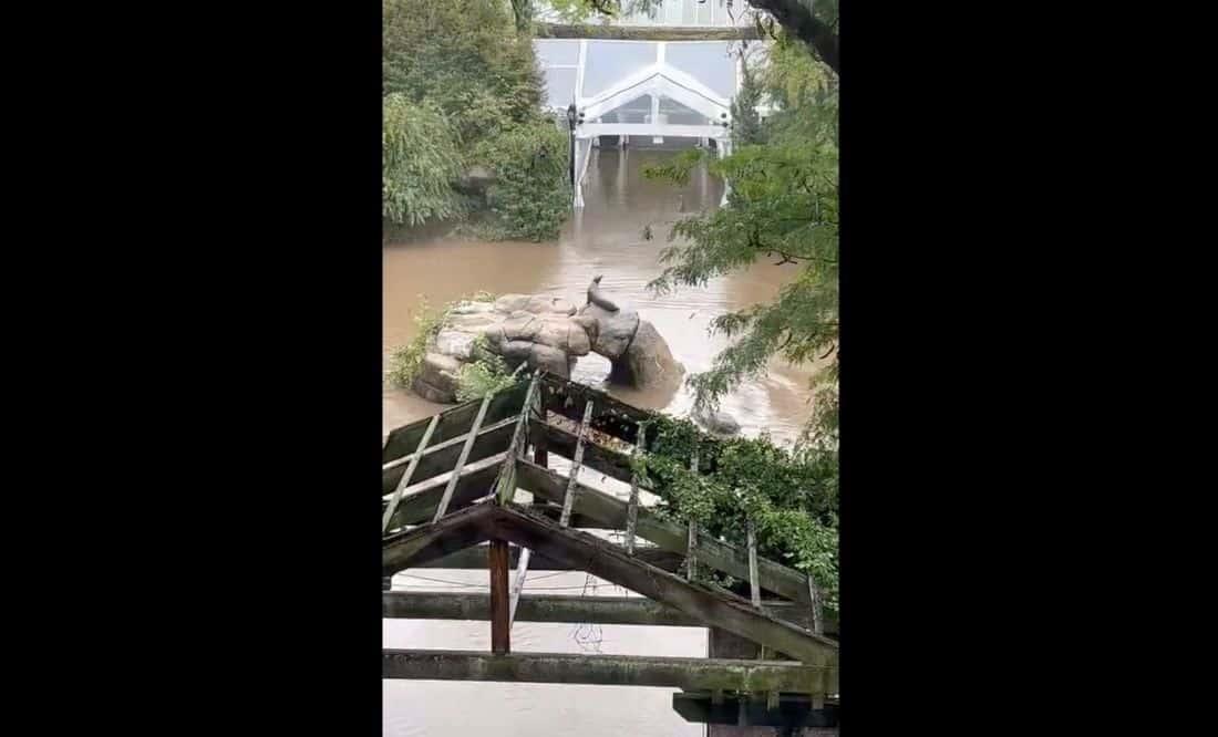 El video que da testigo del hecho, difundido en la red social X (antes Twitter), deja ver como después de que toda el área que rodea el hogar del mamífero quedara cubierta por el agua de la inundación, el animal se confunde y continúa con su nado, como si la superficie líquida donde se desplazaba formara parte del mismo cuerpo de agua.