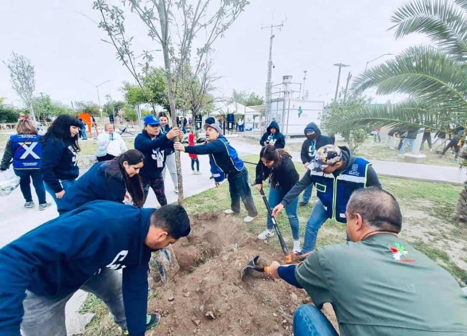 La plaza de la colonia Los Naranjos fue testigo del trabajo conjunto de decenas de voluntarios y vecinos se unieron a la campaña Arboreando San Nicolás, en su primera etapa, mediante el cual las autoridades pretenden reforestar los espacios públicos de más de 20 colonias de la ciudad.
