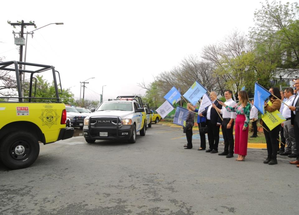 “Damos el banderazo de salida de las nuevas unidades que van a cubrir la zona poniente de Monterrey para ya tener un total de 343 colonias que tenemos ya de cobertura en Monterrey”.