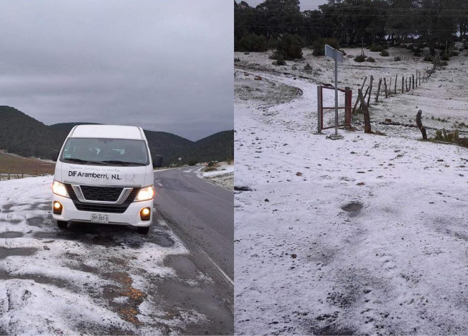 La dirección de Protección Civil de Nuevo León reportó la caída de aguanieve en la carretera No. 61 Galeana a Doctor Arroyo, a la altura de Puerto Cieneguillas.