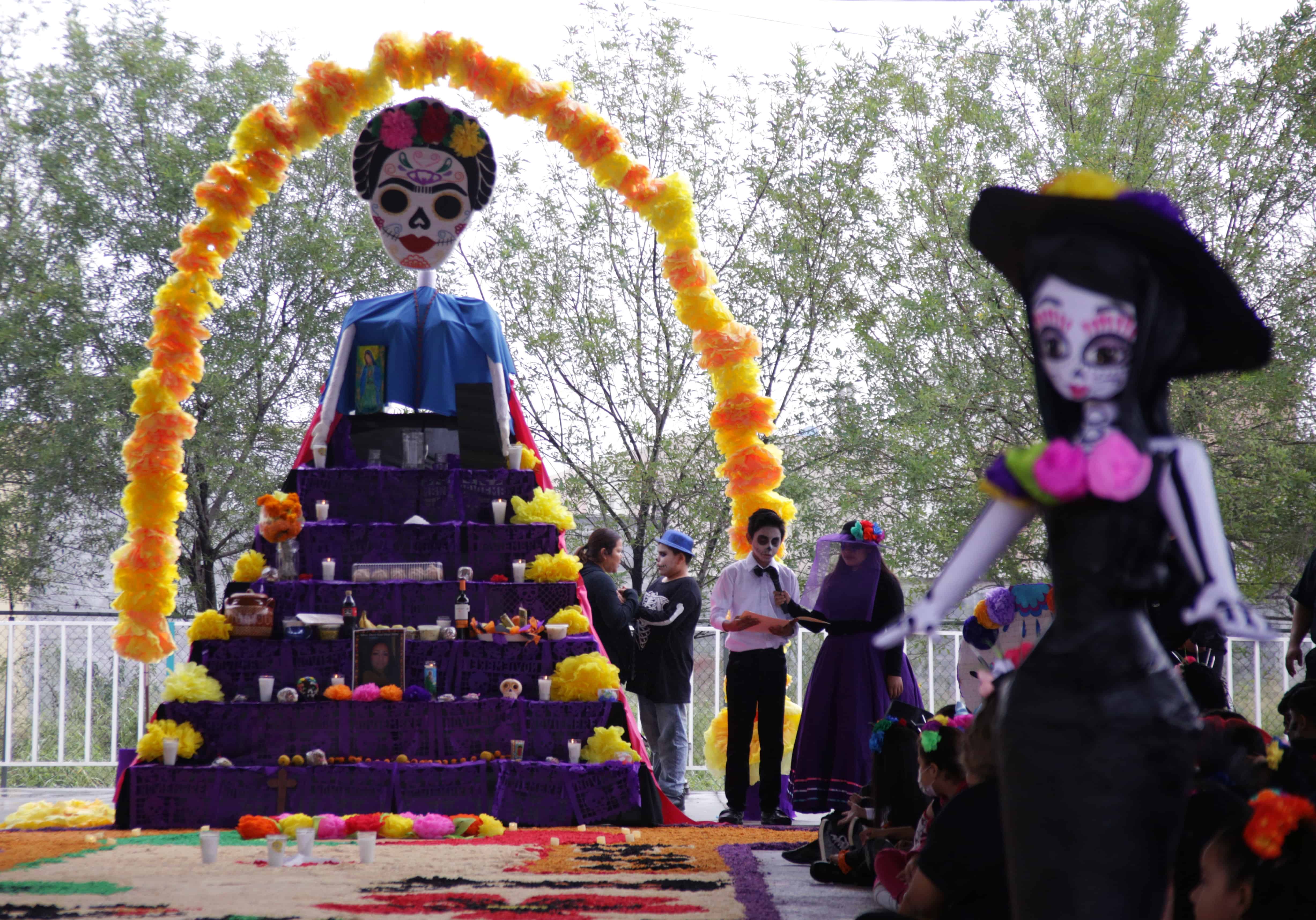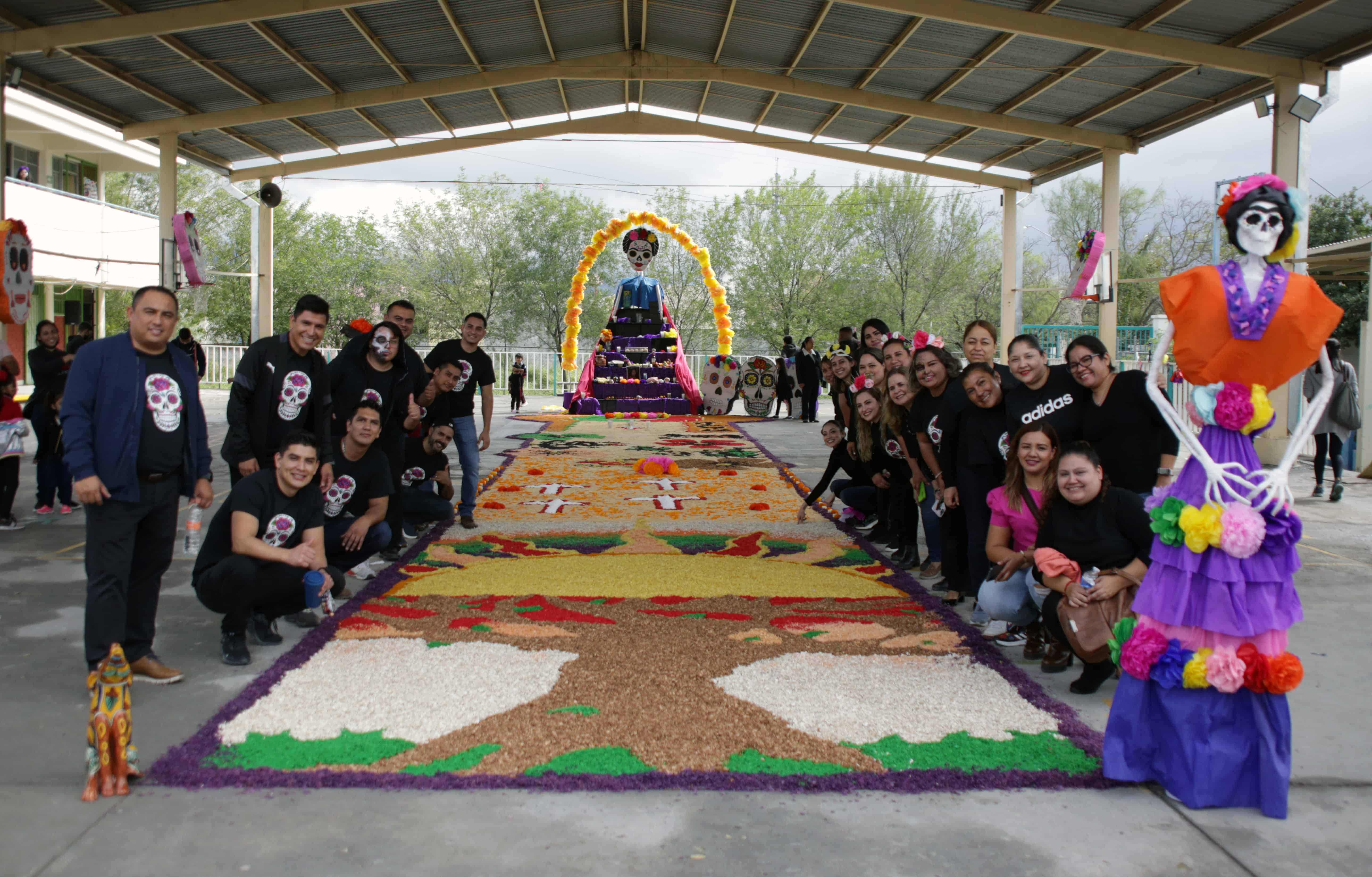 Tras dos años de no poder realizarla a causa de la pandemia, en este 2022, decidieron conmemorar en grande esta tradición con un “Mega Altar” instalado en el patio principal de la escuela y el cual se realizó también para recordar a una maestra muy apreciada en la institución y quien falleciera en enero de este año.