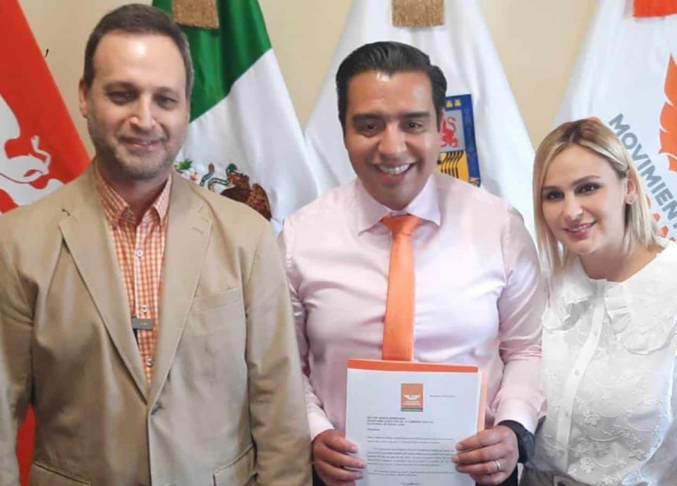 En compañía del dirigente estatal de MC, Horacio Tijerina, y de su esposa Paola García, Nava Rivera signó el documento que lo acredita formalmente como miembro del partido del gobernador Samuel García Sepúlveda.