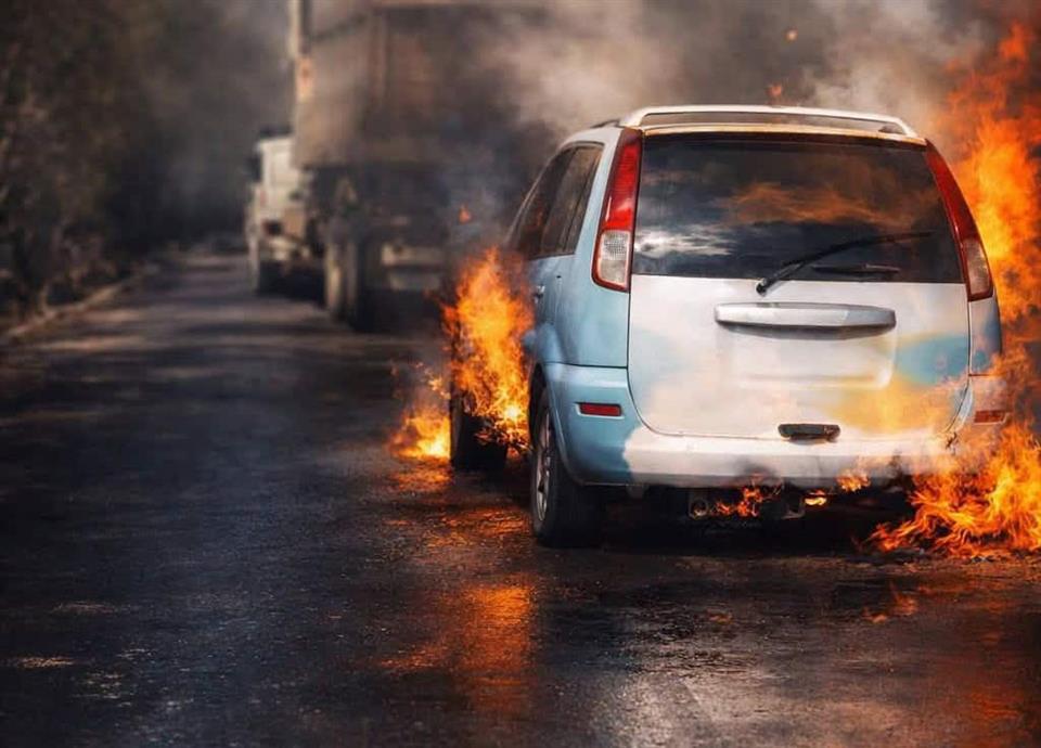 Roba camioneta, se incendia y lo detienen